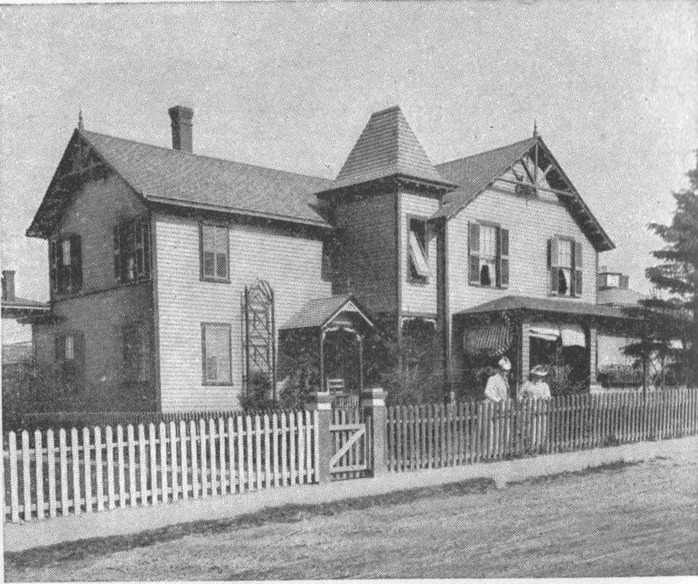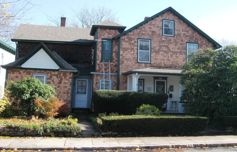 21/2-story, U-plan residence, originally covered by clapboards but later shingled. Beneath the north gable there remains
