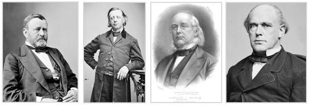 Above, from the left, President Ulysses S. Grant, abolitionist Henry Ward Beecher, publisher Horace Greeley,
