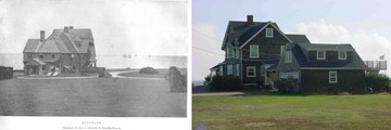 gable and hip-roofed wings to the west, and a glazed veranda facing the ocean.