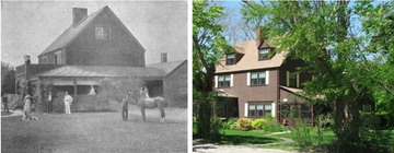 21/2-story, wood-shingled dwelling with gabled dormers and a polygonal bay on the south side.