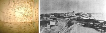 Above, left, part of a map from a 1895 atlas showing the easternmost part of the route of the Narragansett Pier Rail Road.