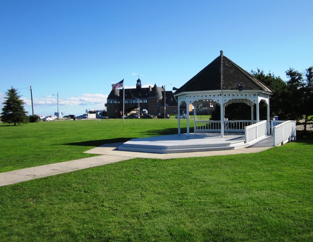 distinctive gazebo is the site of concerts and art shows during the summer. The area may be
