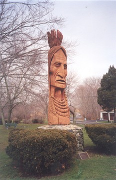 The dramatic, 23-foot-high, wooden Indian sculpture on Kingstown Road is the work of Peter